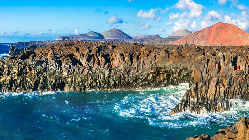 - À Lanzarote, les falaises grises, abruptes et imposantes se jetant dans le bleu du ciel et de l’océan n’ont pas leur pareil afin de conférer à leurs visiteurs une impression d’immensité vertigineuse et de beauté infinie